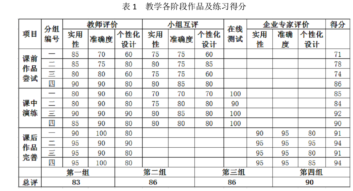 表 1 教学各阶段作品及练习得分