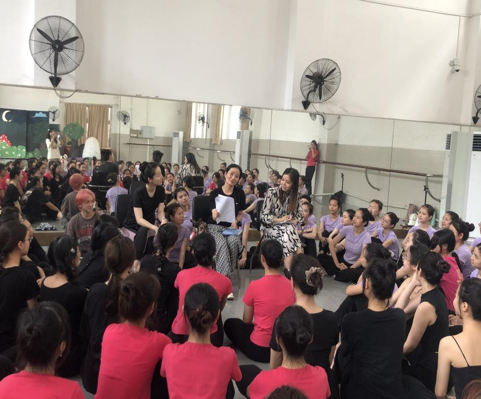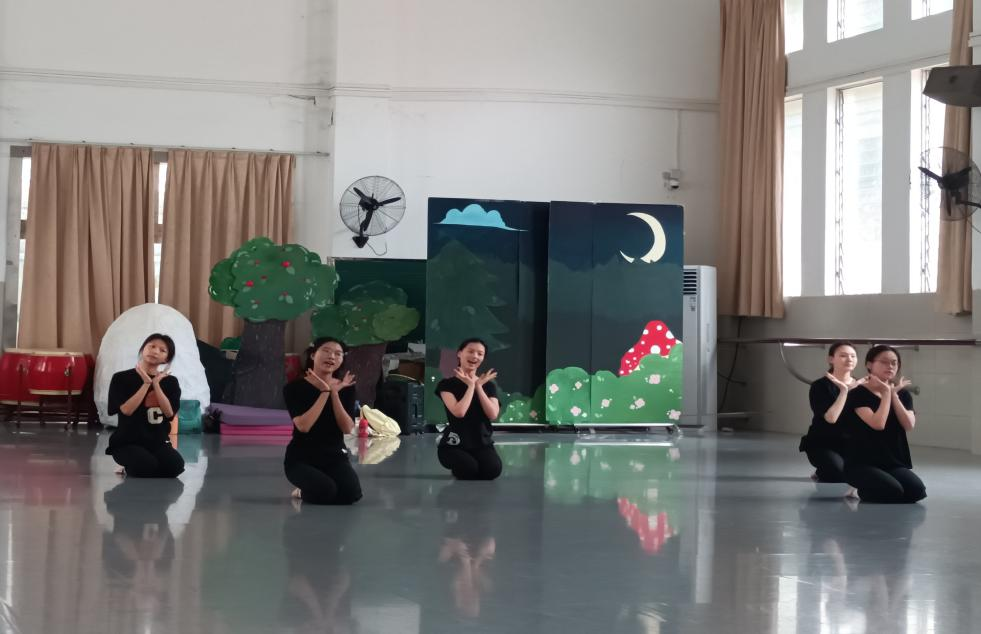 为全面推进学前教育学院“人才培养个性化、教学成果作品化、教学手段信息化、教学视野国际化”的教学“四化”改革,完善国家精品开放课程项目,2023年5月19日中午12点,学前教育学院舞蹈教研组在燕岭校区大舞蹈室进行《幼儿律动》——多彩的四季舞目联排。项目负责人谢琼教授、涂越老师及舒群老师一同到场莅临指导。