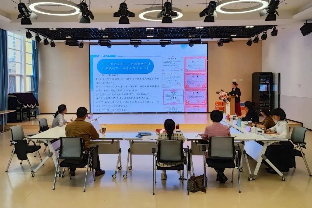 阳江市政府机关幼儿园教务主任陈景宜进行课题《新时代美育背景下幼儿园美术教育多元路径的研究》的结题汇报。