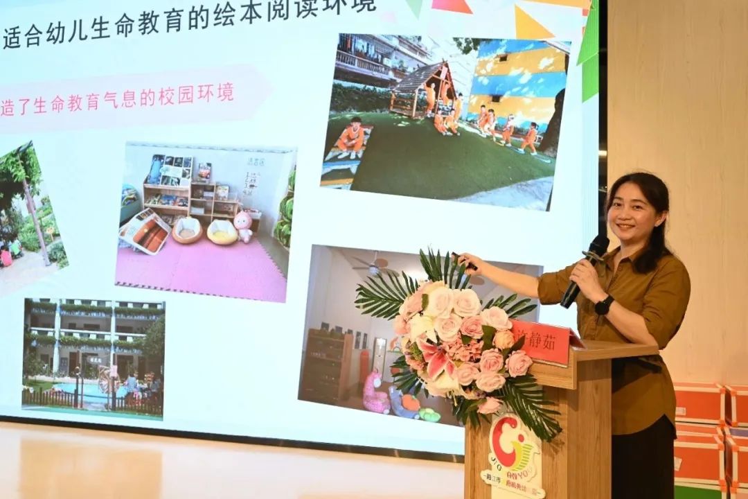 茂名市第一幼儿园办公室主任许静茹进行课题《依托绘本开展幼儿生命教育的实践研究》的结题汇报。