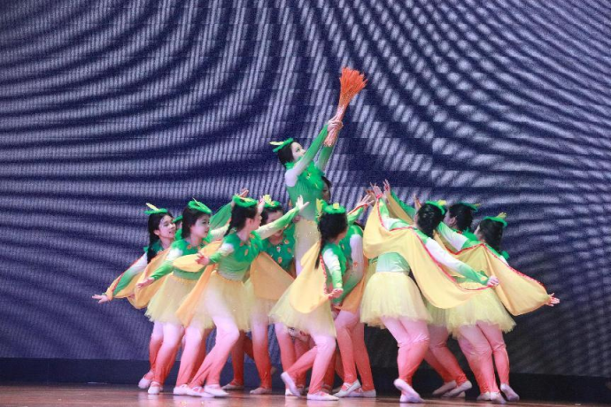 舞蹈《快乐的布谷》以儿童视角为切入点,通过拟人化的布谷鸟形象,展现自然与童真的和谐之美。涂越老师在分享中强调:"学前教育舞蹈的创作核心是‘以美育心’,既要符合幼儿审美,又要融入教育意义。"为贴近儿童认知,团队将传统民族舞与现代卡通元素结合:演员通过灵动的肢体模仿布谷鸟展翅、觅食等动作,配合轻快的音乐节奏,传递出活泼向上的生命力。