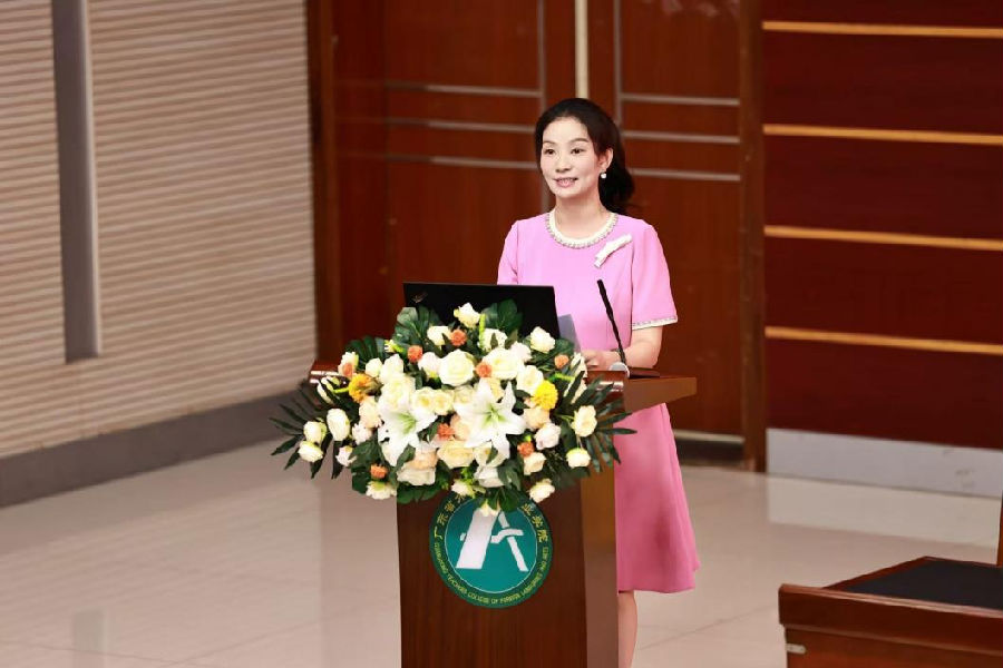 9月9日,广东外语艺术职业学院隆重举行第41个教师节庆祝大会暨师德建设主题教育月活动启动仪式。荣获2025年“南粤优秀教师”荣誉称号的谢琼教授作为优秀教师代表发言,分享她对教育家精神的体悟与实践。